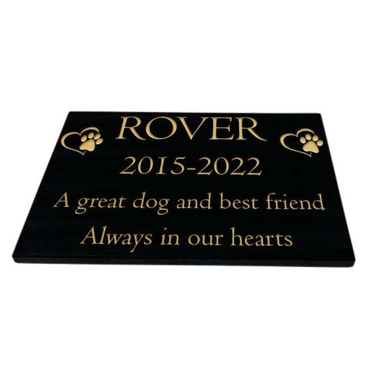 Crafted from memorial-grade black granite and polished to a flawless shine, each plaque is engraved in-house in the UK for lasting durability and beauty. The paw & heart design adds a warm and personal touch, making it ideal for a garden tribute, pet resting place, or indoor remembrance.