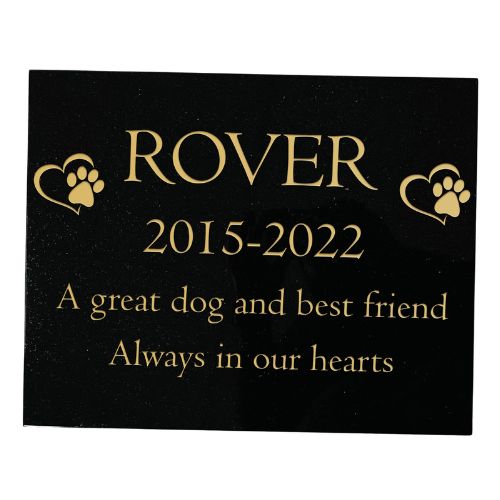 Celebrate the life and unconditional love of your dog with our Premium Black Granite Paw & Heart Memorial Plaque. Featuring an elegant paw and heart motif alongside your personalised engraving, this plaque is a heartfelt way to remember your faithful companion.